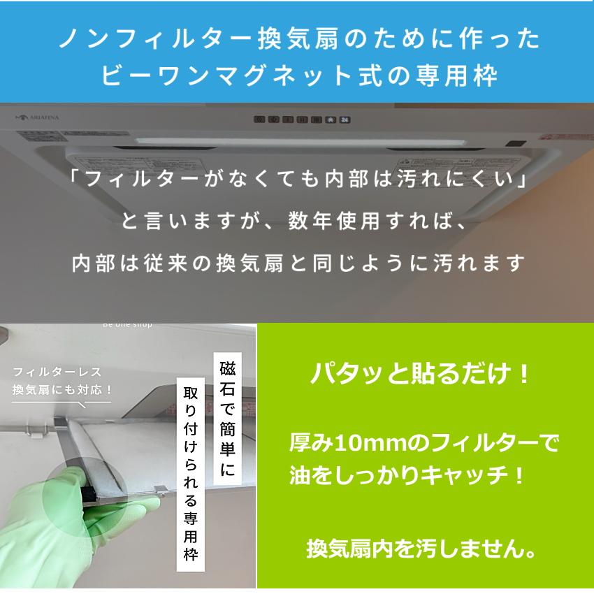 マグネット付き専用枠 ノンフィルター フィルターレス専用 ビーワン 換気扇フィルター レンジフードフィルター