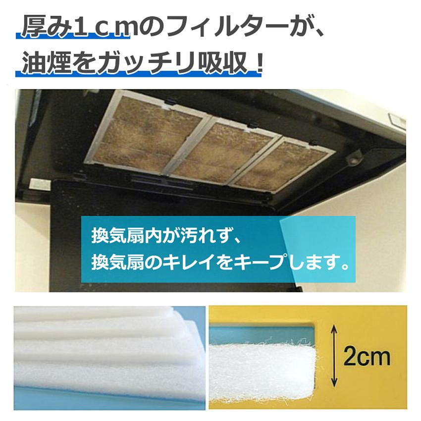 厚み1cmのフィルターが、油煙をしっかり吸収し、換気扇内の汚れを防ぎます。国産の高品質レンジフィルターなので、安心してご使用頂けます。
