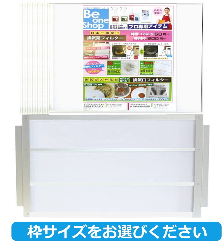 フィルターレス 換気扇フィルター (枠1枚+フィルター12枚セット) ※サイズを選択してください。※カートに入れて頂くと値段が確定します。(01)